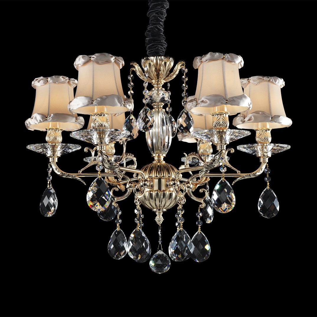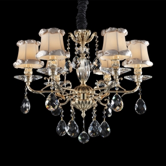 Dies kann auch zugeschrieben werden Kristall-Kronleuchter mit einer Vielzahl von Anhängernwegen ihrer Feierlichkeit und häufigen Irrelevanz in anderen Räumen oft für Schlafzimmer gewählt. Sie benötigen wie Pendelleuchten hohe Decken, da das sperrige Kristallmodell auf sich aufmerksam macht und den umgebenden Raum sowohl nach oben als auch nach unten "frisst".