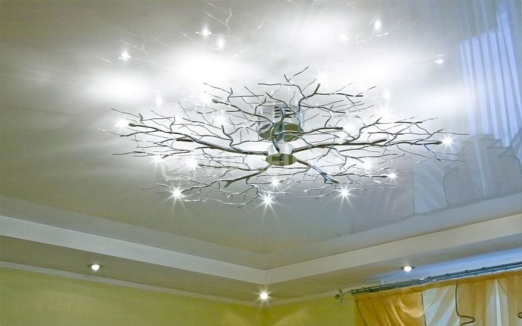 Es ist nicht notwendig, ein Overhead-Modell mit Krankenhäusern und Schulen in Verbindung zu bringen. Moderne Versionen mit Eucarcass sind nicht schlechter als hängende, sie erfüllen die dekorative Rolle, nehmen gleichzeitig weniger Platz ein und sind sogar für die Installation an niedrigen Decken geeignet.