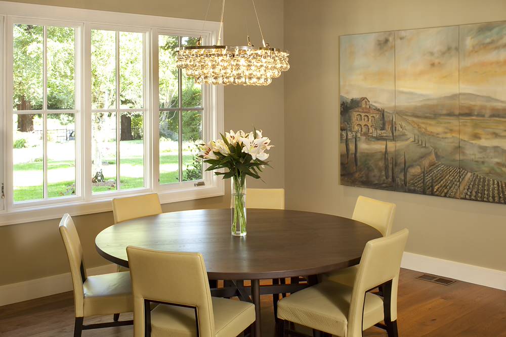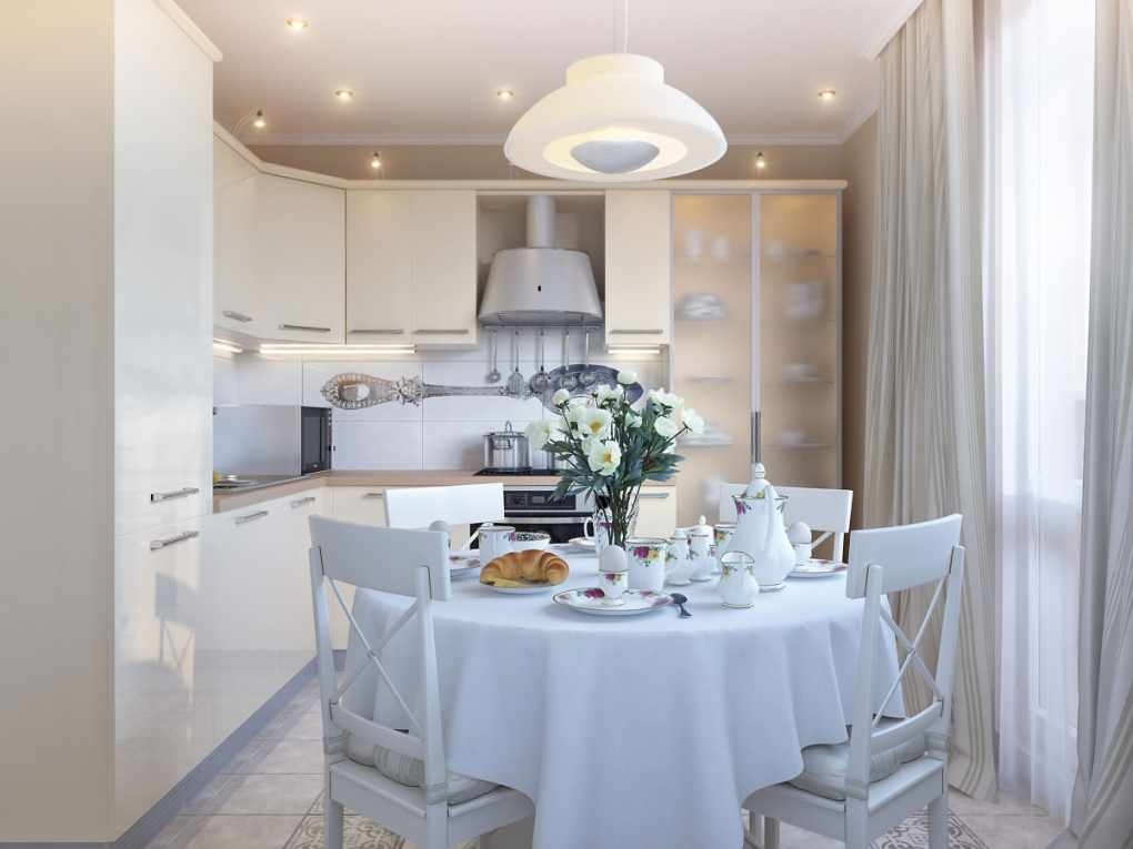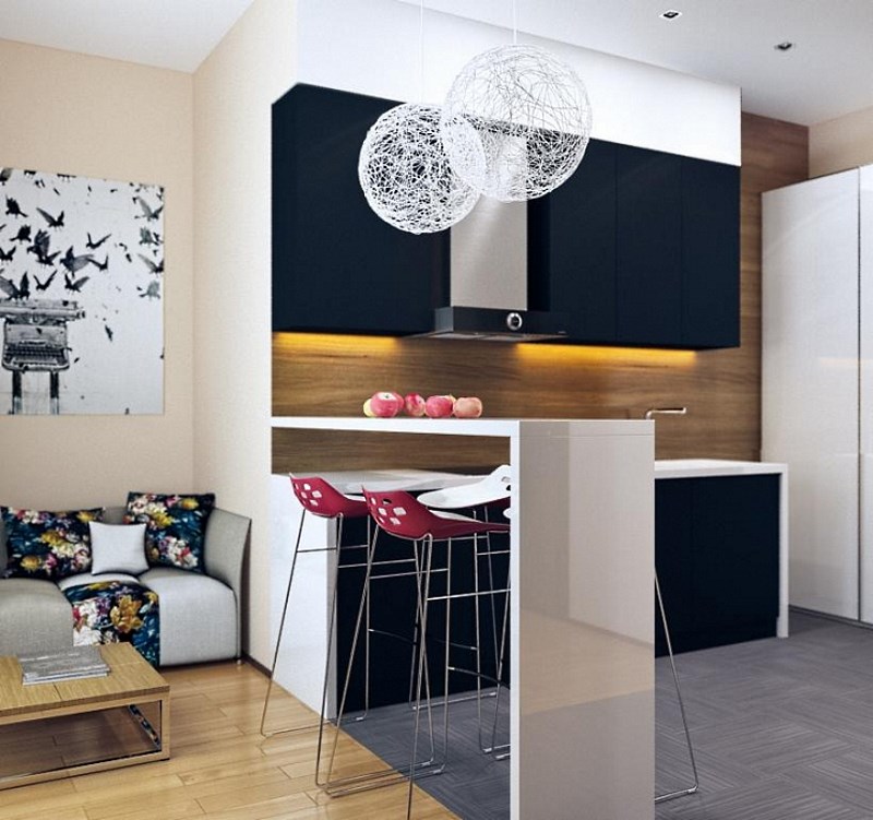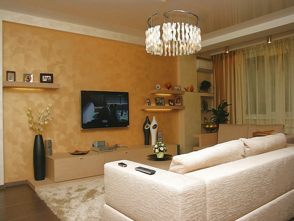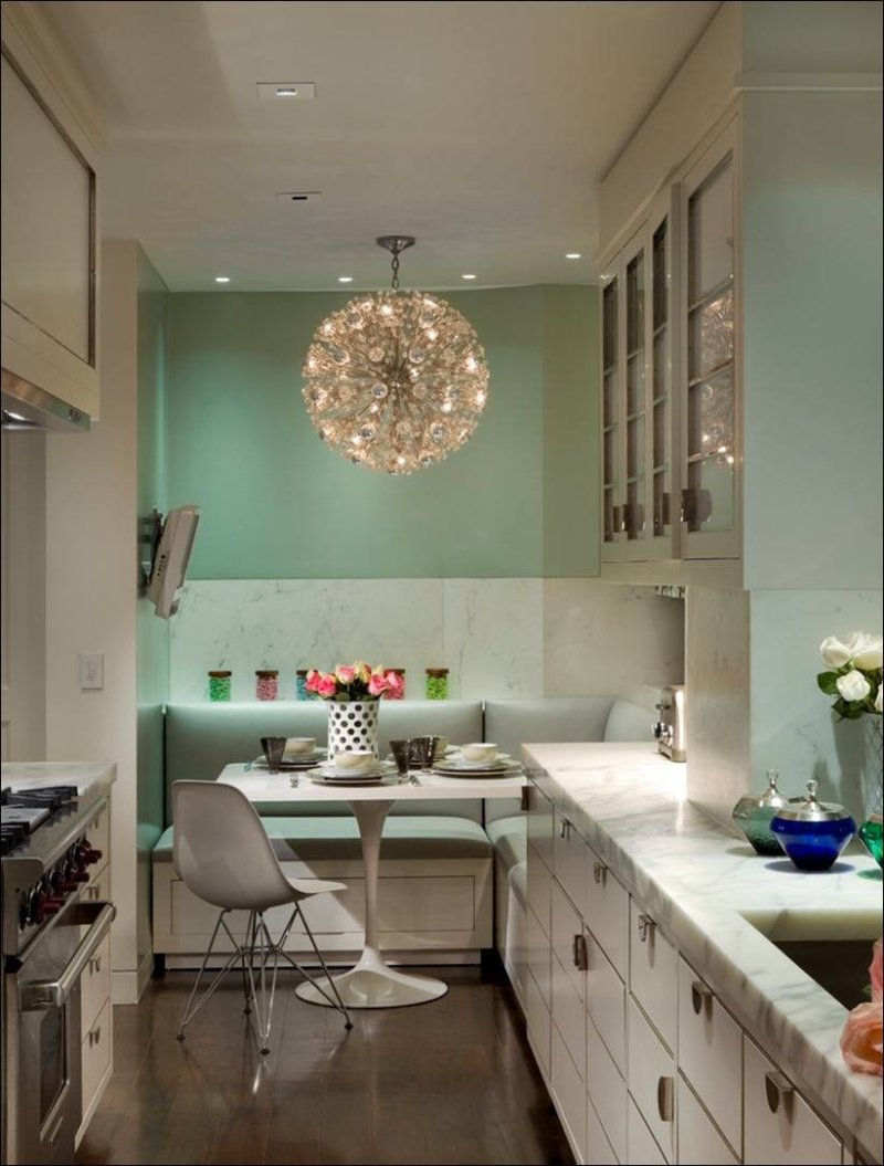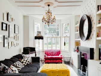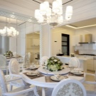 - Zoning-Techniken sind willkommen, einschließlich der Verwendung von Licht. Viele Kronleuchter haben spezielle Lampenschirme, um den Lichtstrahl in die gewünschte Richtung zu lenken.