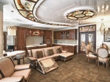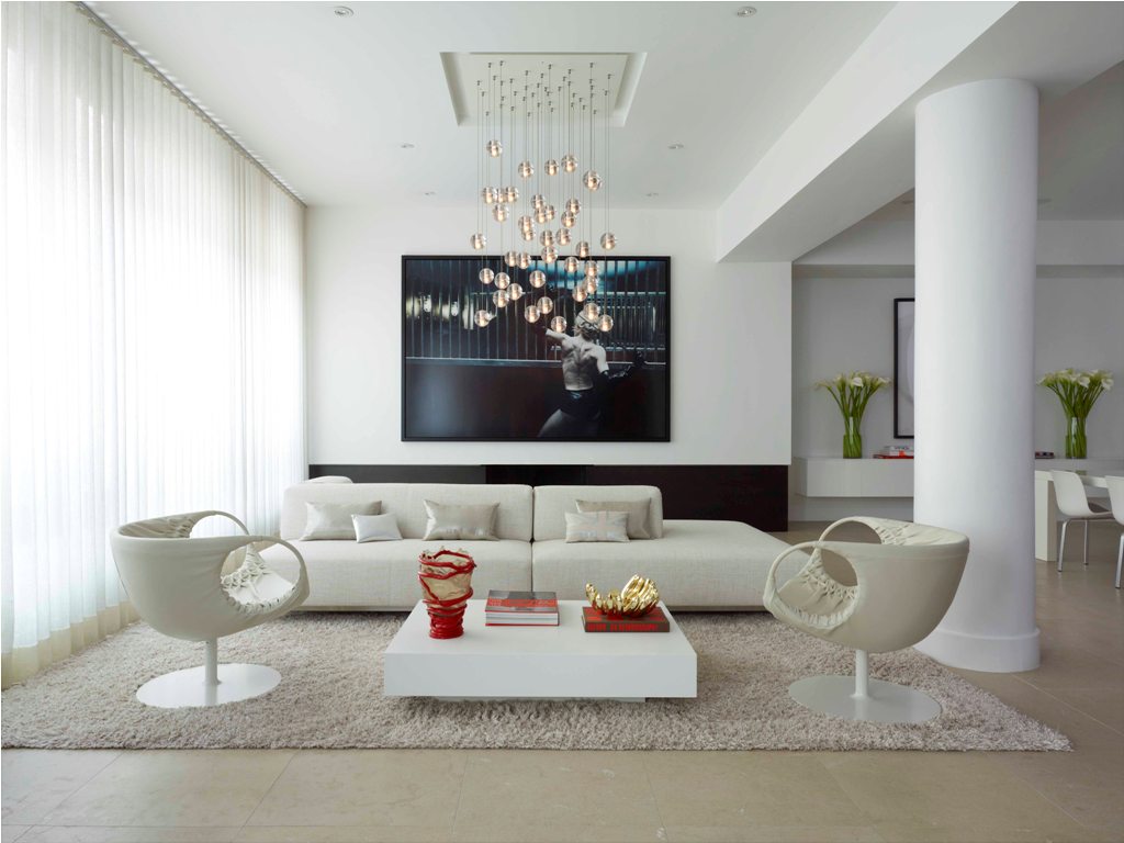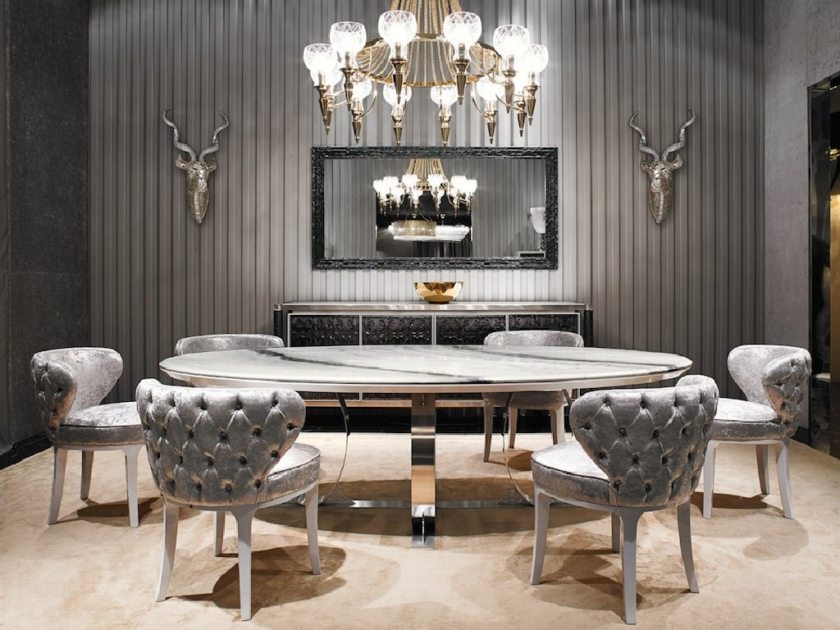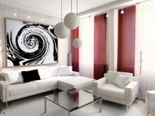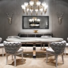 Die erste dieser Arten ist uns allen am vertrautesten. Der Kronleuchter ist mit Hilfe von speziellen Elementen direkt an der Decke befestigt, daher befindet er sich in der Regel im visuellen Zentrum des Raumes. Dies passt sehr gut zu einem Kronleuchter in einem ähnlichen Stil, da eine der Regeln der Moderne darin besteht, dass das Objekt sofort Aufmerksamkeit auf sich zieht und nicht unbemerkt bleibt.