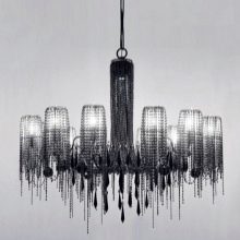 Die größten werden berücksichtigt vielstufige moderne Kronleuchterdie zwei oder mehr Reihen von Glühbirnen besitzen, und auch in Fülle von dekorativen Elementen unterscheiden können. Solche Modelle wären natürlich nur für Korridore und Wohnzimmer mit sehr hohen Decken geeignet.