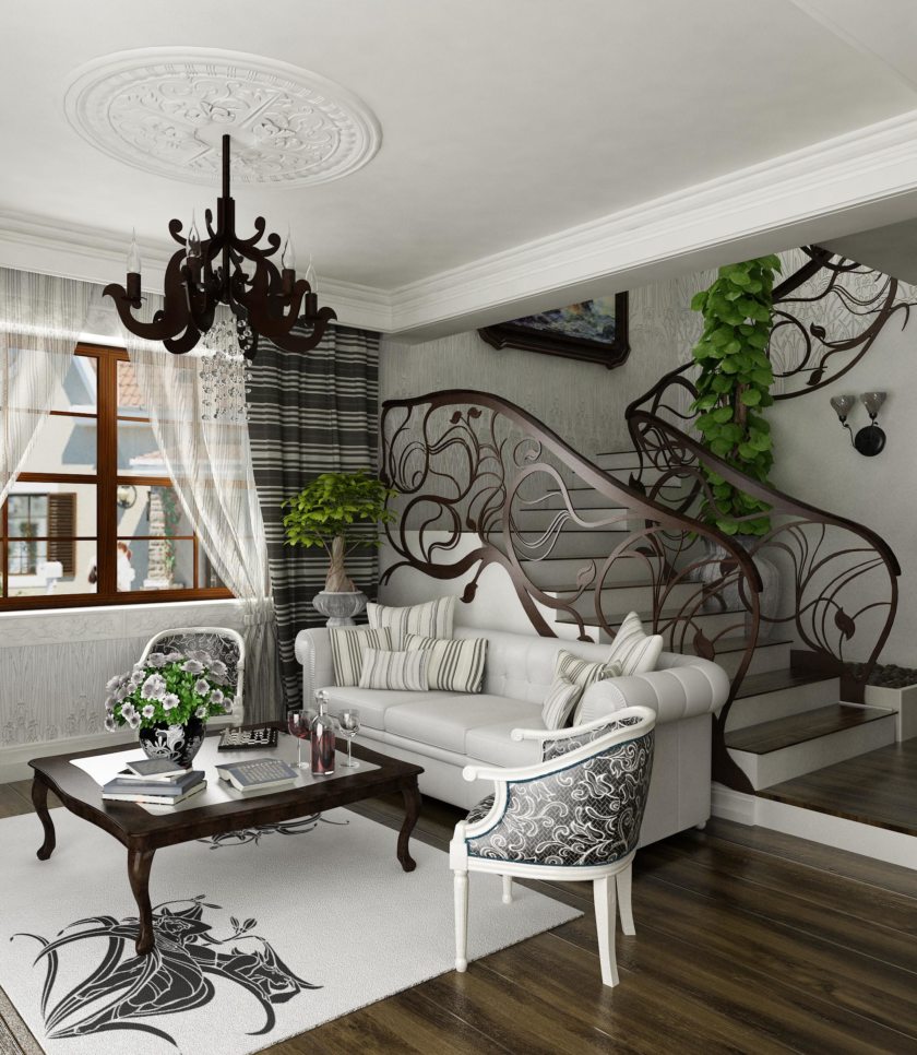 Um sich das eindrucksvollste Beispiel der Moderne vorzustellen, reicht es aus, einige Elemente der klassischen Versionen von Kronleuchtern, Vintage und moderne Modetrends im Design zu mischen. Es wird angenommen, dass diese Richtung in der Gestaltung der Wohnung von außergewöhnlichen Menschen gewählt wird, die große finanzielle Möglichkeiten haben, obwohl in Wirklichkeit Heute sind Jugendstil-Kronleuchter für fast jeden verfügbar.