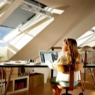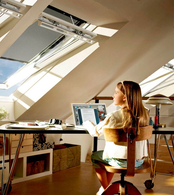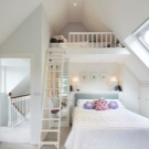 Das Bett (um Platz zu sparen und zusätzlichen Komfort zu schaffen) kann an einem Ort mit der steilsten Decke aufgestellt werden. Eine solche Lösung wird es ermöglichen, einen Schlafbereich besonders kreativ zu gestalten - es besteht die Möglichkeit, einen Baldachin über dem Bett zu platzieren und die Wand mit Gemälden oder Regalen mit Büchern und anderen Kleinigkeiten zu schmücken. Auch die Sterne im Dunkeln über dem Kopf tragen zur Entstehung einer besonderen bezaubernden Atmosphäre bei.