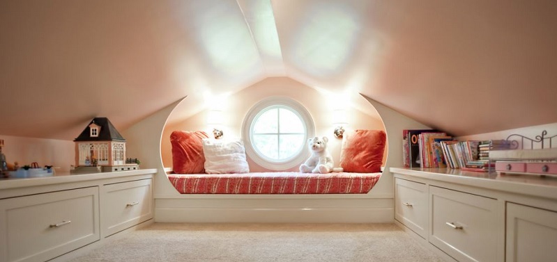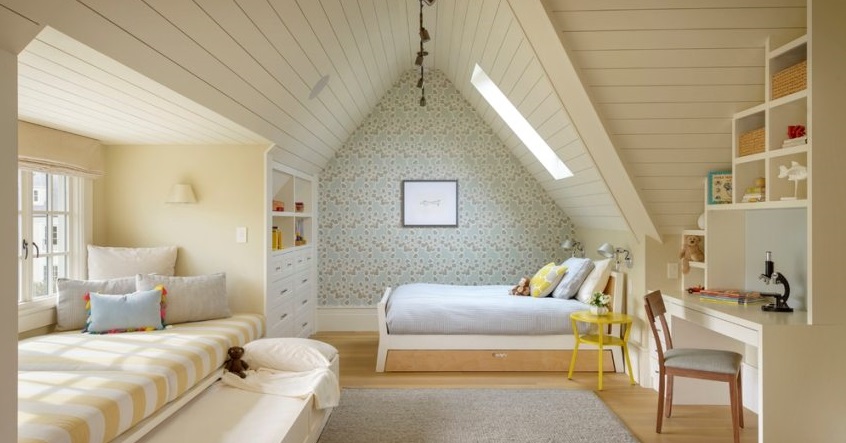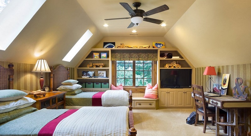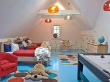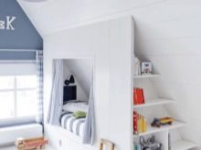 Was könnte interessanter sein als ein Schlafzimmer auf dem Dachboden? Viele Kinder lieben es, in die oberen Stockwerke zu klettern, daher muss das Zimmer unter dem Dach unbedingt zu ihrem Geschmack kommen.Es ist auch wichtig, dass aufgrund dieser Lage eine großartige Aussicht von den Fenstern aus besteht, und die Besonderheiten des Daches werden dem Raum eine Art Geheimnis verleihen.