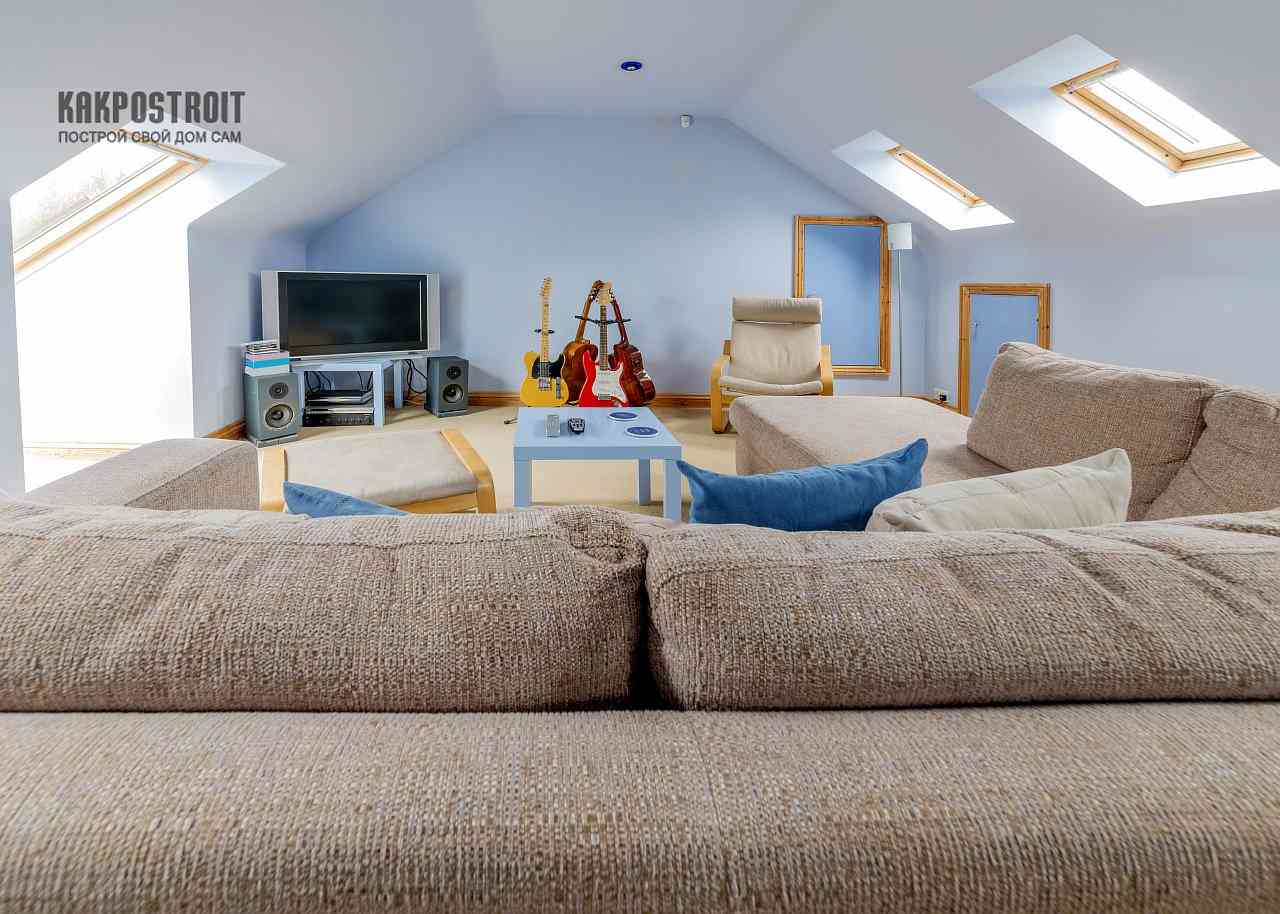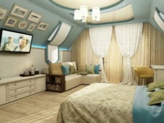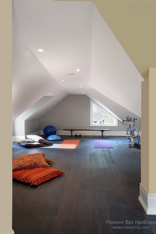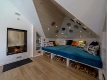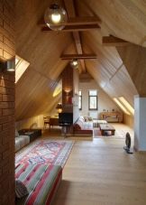 Der Zweck des Dachbodens und die Möglichkeiten der Anordnung beschränken nur seine Größe, Ihre finanziellen Möglichkeiten und natürlich Phantasie. Schließlich können Sie unter dem Dach fast jeden Raum gestalten: ein Schlafzimmer, ein Wohnzimmer mit einem Billardtisch, ein Wohnzimmer, ein Ankleidezimmer, ein Badezimmer, ein Gästezimmer, ein Büro, ein Fitnessstudio und sogar eine kleine Küche.