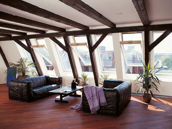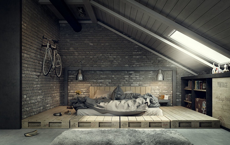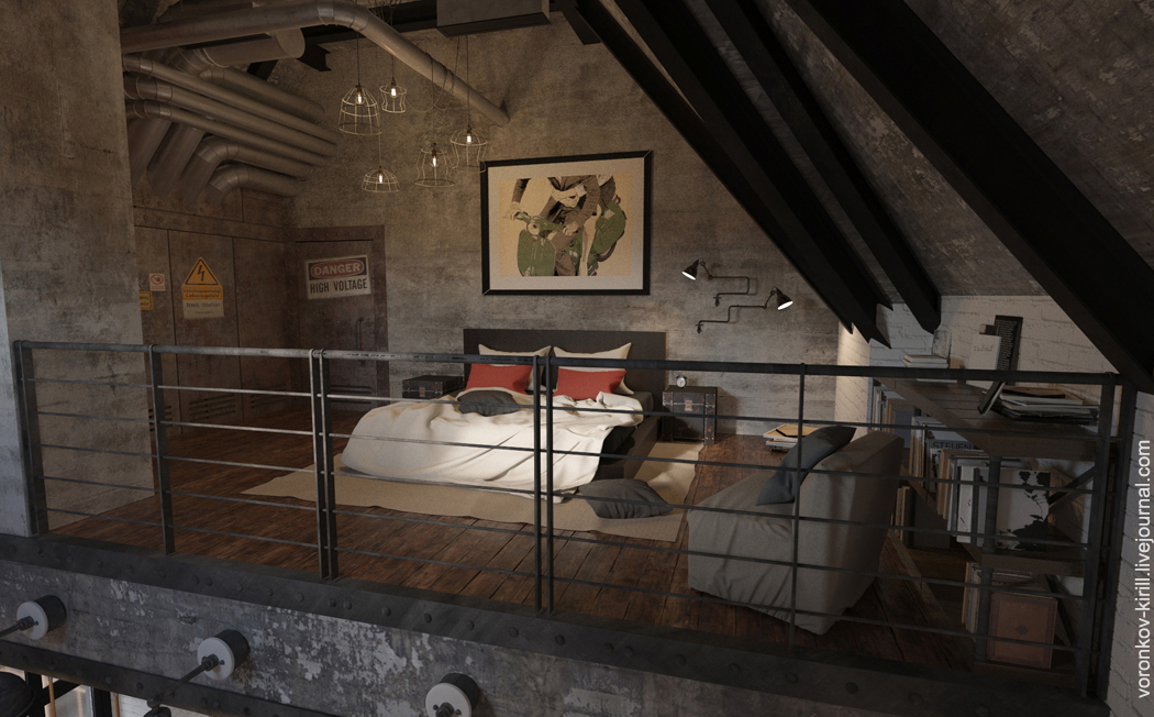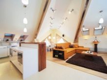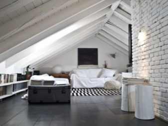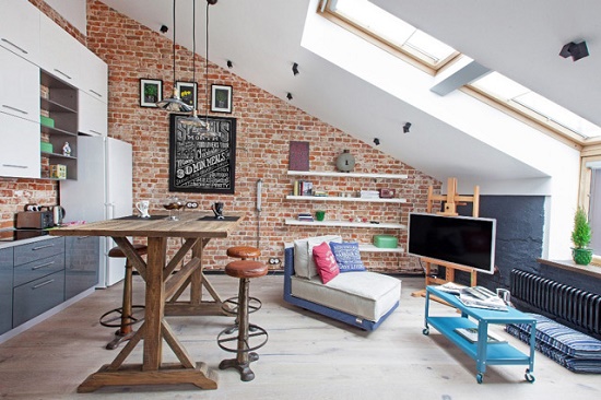 - Attischer Stil Loft verwendet in der Regel in städtischen Wohnungen unter dem Dach. Diejenigen, die einen unhöflichen Loft-Stil mögen, sind glücklich, weil die Lage des Dachbodens nur auf das Vorhandensein von rauem Finish im Inneren schließen lässt, zum Beispiel, Ziegelwände, rauher Putz oder Beton. Kommunikationen und Rohre müssen für Reparaturen nicht maskiert werden, weil sie nur den Stil des Lofts betonen.