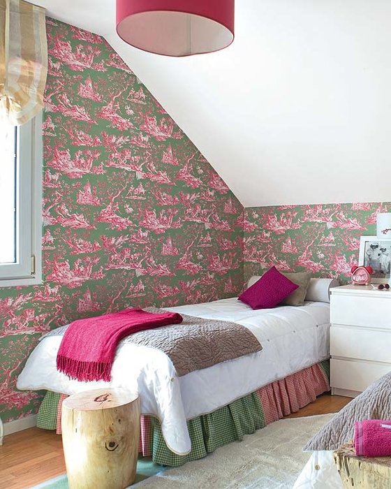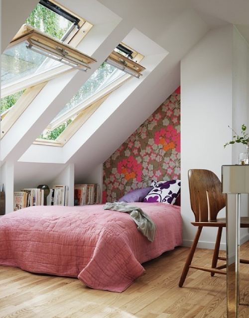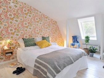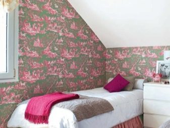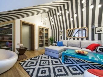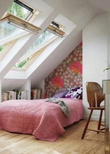 - Kann verwendet werden und Tapete im Inneren, während die Rezeption mit vertikalen Streifen wird optisch die Höhe der Dachboden erhöht. Ein ähnlicher Effekt wird auch erreicht, indem die Wände und die Decke mit dem gleichen Material versehen werden. Um den soliden Innenraum zu variieren, streichen Sie die oberste Wand des Raumes unter dem Dach in einem hellen Farbton, der optisch dazu beiträgt, den Raum zu vergrößern.