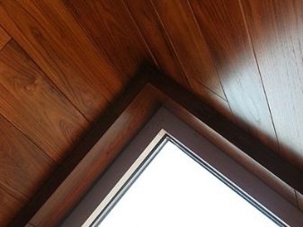 Und die Verlegung des Holzes unter dem Dach erfolgt parallel zu den Dachsparren, was neben der ästhetischen Optik auch eine hervorragende Belüftung zwischen Isolierung und Veredelung bietet. Vergessen Sie nicht, die Holzoberflächen mit Schutzlacken zu beenden, was das Leben des Holzdaches verlängern wird. Von den Nachteilen bemerken wir nur die Möglichkeit der Zündung.
