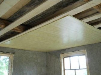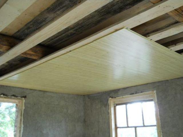 Diele. Der Hauptvorteil dieses Ausrüstungsmaterials ist, dass es nicht mit speziellen Mitteln behandelt werden muss, während es gleichzeitig den Holzdecken in seinen äußeren Qualitäten in nichts nachsteht. Achten Sie bei der Installation einer solchen Beschichtung darauf, dass die Raumtemperatur im Raum liegt und die Luftfeuchtigkeit 60% nicht übersteigen sollte.