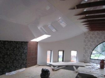 Spanndecken sind eine hervorragende Alternative zu schweren Holzkonstruktionen, bei denen das Dachstuhlsystem manchmal Überladungen trägt. Solche Konstruktionen sind für jede Art von Unterstand geeignet: einfach, doppelt, gewölbt oder gewölbt. Spanndecken können mit Anstrichen, Tapeten oder Gips kombiniert werden. Die Funktionalität solcher Decken wird den Dachboden so komfortabel und einzigartig wie möglich machen.