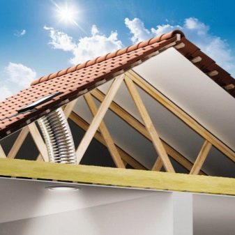 Optionen für Exterieur-Design Dachboden ein paar. Da die Dachschrägen den Dachboden vor allen Arten von Niederschlägen und Temperaturschwankungen schützen sollen, ist es notwendig, nicht nur das Innere zu produzierenaber auch externe Wärmedämmung. Als Heizgerät können Sie Trockenbauplatten oder Zementspanplatten verwenden. Der äußere Teil des Dachisolierungssystems muss eine Windschutzschicht enthalten und der innere Teil muss einen Dampfschutz enthalten, damit sich an den Wänden kein Kondensat, keine Feuchtigkeit und kein Pilz bilden.