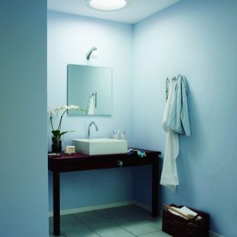 Um dieses Problem zu lösen, werden Sie von einem "unsichtbaren" Interieur mit transparenten Kunststoff- oder weißen Möbeln und notwendigerweise hellen Wänden unterstützt.