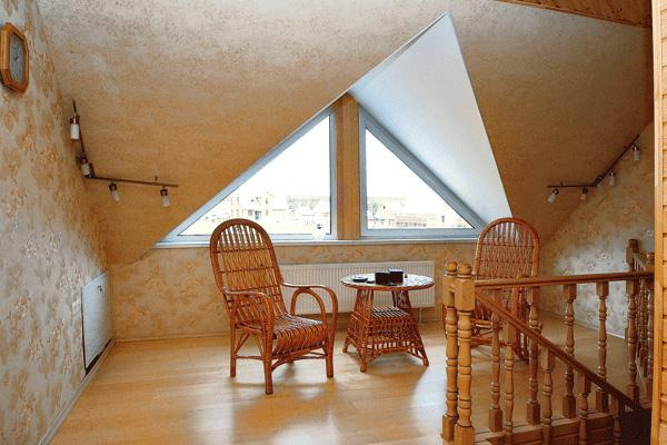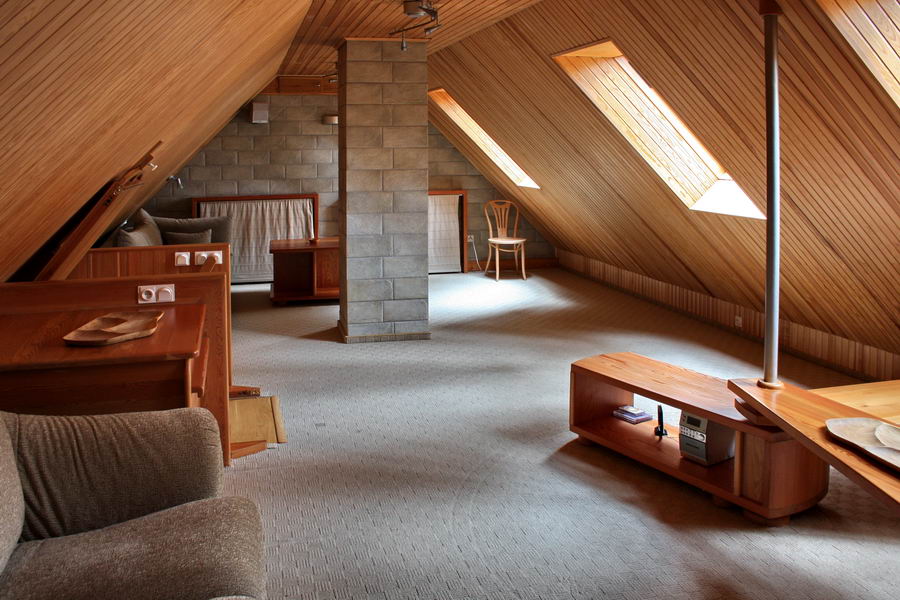 - Erhöhung der Wohnfläche eines kleinen Hauses, beispielsweise auf dem Land auf Kosten des Dachbodens;
