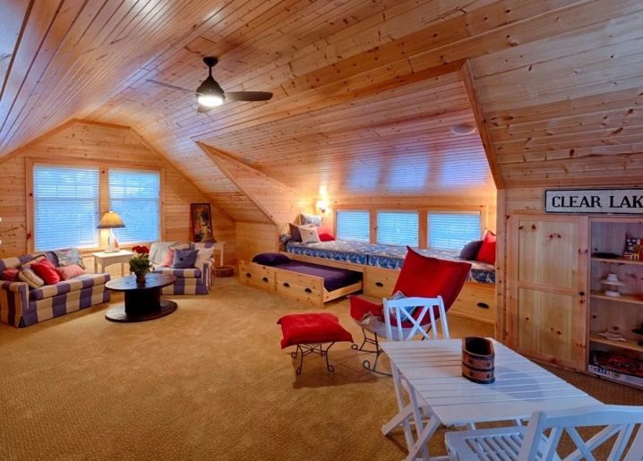 Holzverkleidung ist ein billiges umweltfreundliches Material, so dass es für die Gestaltung des Dachbodens der Villa in der Regel verwendet wird. Gleichzeitig Decken und Wände.Die beste Art der Auskleidung, laut Experten, ist Erlenholz. Von den Vorteilen des Futters bemerken wir: