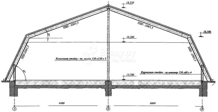 Die einzige Komplexität dieses Designs - eine spezielle Organisation der Sparren, gepaart mit Zahnstangen und einem Bolzen.