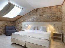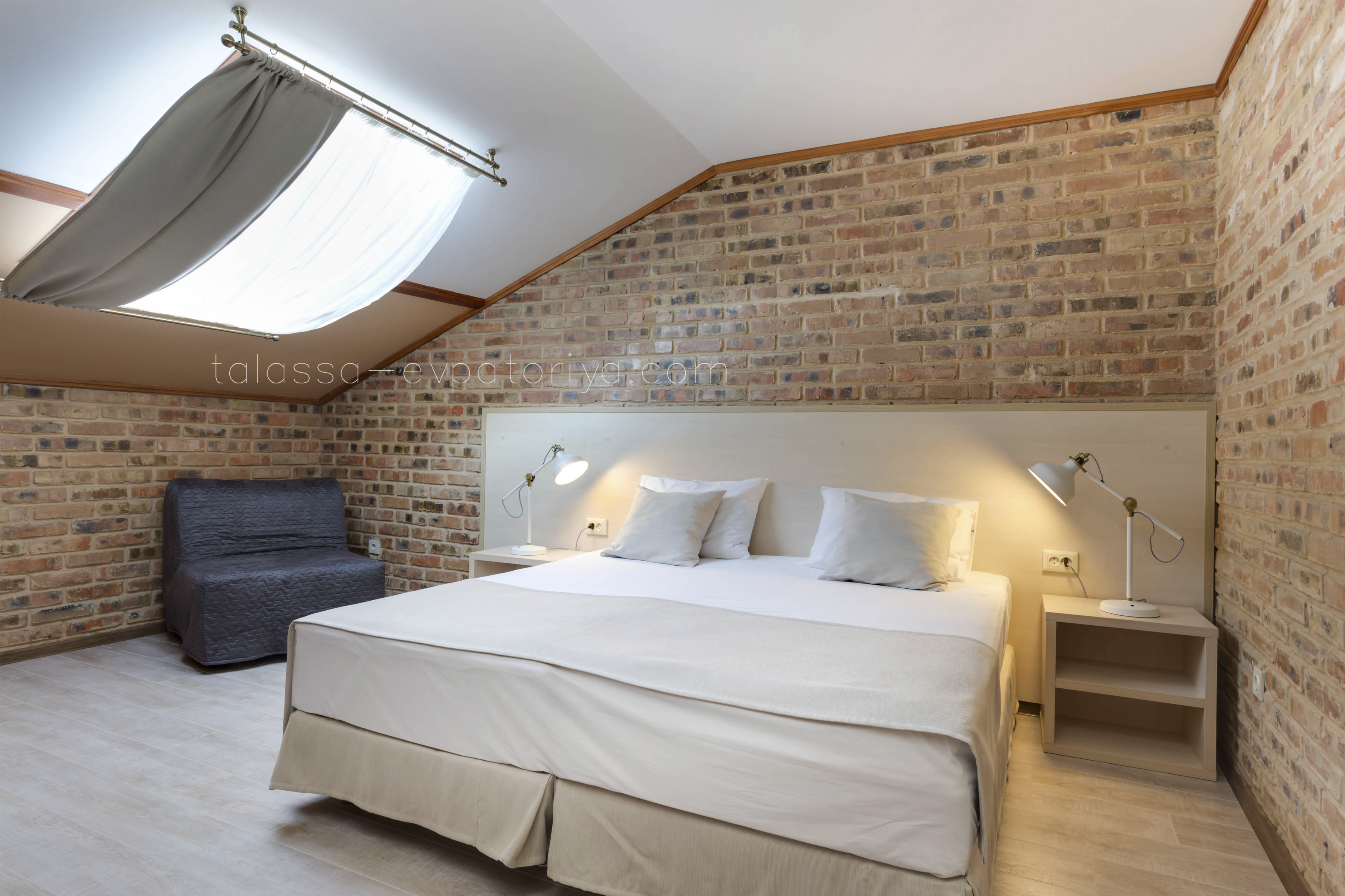 Für solch ein Zimmer braucht man keine hohen Decken und viel Platz - genug Betten, ein kleiner Nachttisch und eine schöne Wandlampe.Wenn es das Zimmer erlaubt, können Sie einen Schrank und einen Schminktisch hinzufügen.