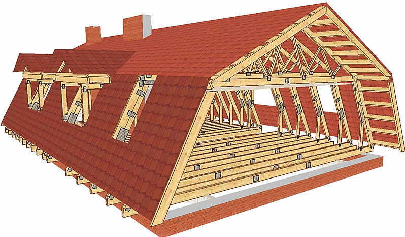 Das Dach dieses Raumes ist Giebel. Für eine bequemere Nutzung des Dachgeschosses machen Sie mit einer Pause. Teil des Daches mit Hang notwendigerweise isoliert. Äußere Mansardenwände haben zwei Teile: vertikal, mit einer Basis mit den unteren Stockwerken, und geneigt, für deren Rahmen das Dachstuhlsystem verwendet wird.