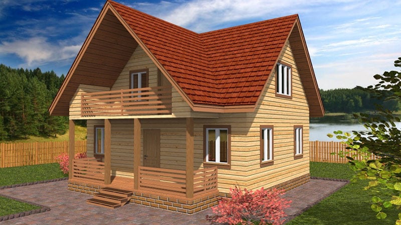 - Mit Balkon. Wenn die Lagerwand es ermöglicht, die Fensteröffnung zu vergrößern, können Sie an dieser Stelle einen Balkon bauen. Um es zu unterstützen, können Sie die Spalten setzen. Es ist besser, es über den Eingang zu tun, der auch eine Dekoration für das Haus sein wird. Der Balkon kann von Zeit zu Zeit genutzt werden, sowie ein Ort für dauerhafte Erholung, so dass Sie dort einen Stuhl, einen kleinen Korbtisch mit einem Sofa und andere Möbelstücke installieren können.
