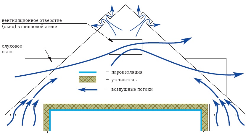 - Belüftung. Die Belüftung des Überbaus unter dem Dach löst das wichtigste Problem in Innenräumen - das Mikroklima. Die verbleibenden Lücken lassen Luft in der Firstzone entweichen und ermöglichen außerdem das Verdampfen von Feuchtigkeit aus der Isolierungs- und Imprägnierschicht.Der Lüftungsspalt muss bis zu 5 cm hoch sein.