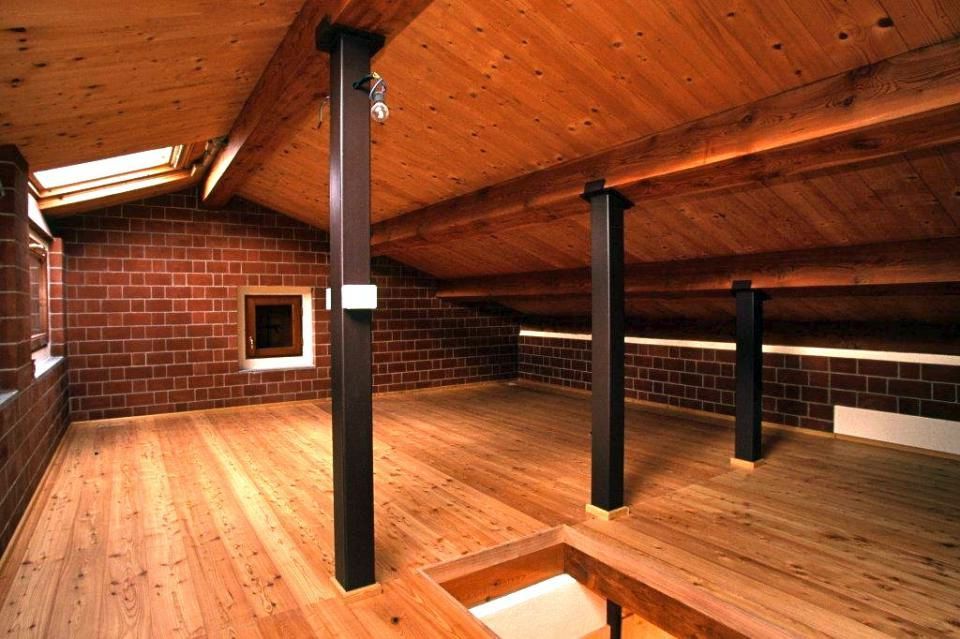 Der Dachboden zeichnet sich durch ein Satteldach aus. Auch seine Decke hat eine geneigte Oberfläche und unterschiedliche Höhe der Wände.