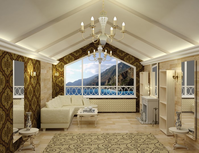 Ein Raum mit einem Mansarddach im Dachgeschoss bietet viele Möglichkeiten zur Anordnung, nur ein Flachdach ist inakzeptabel.