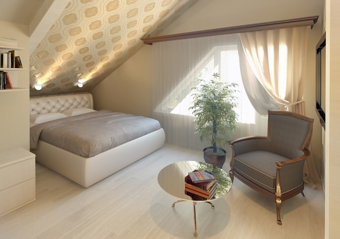 Praktisch jeder möchte morgens die Möglichkeit haben, in einem gemütlichen Bett unter den schrägen Wänden zu liegen und die Morgendämmerung zu bewundern, aus dem Fenster schauend. All diese Träume können realisiert werden, indem ein Schlafzimmer auf dem Dachboden fertig gestellt wird.