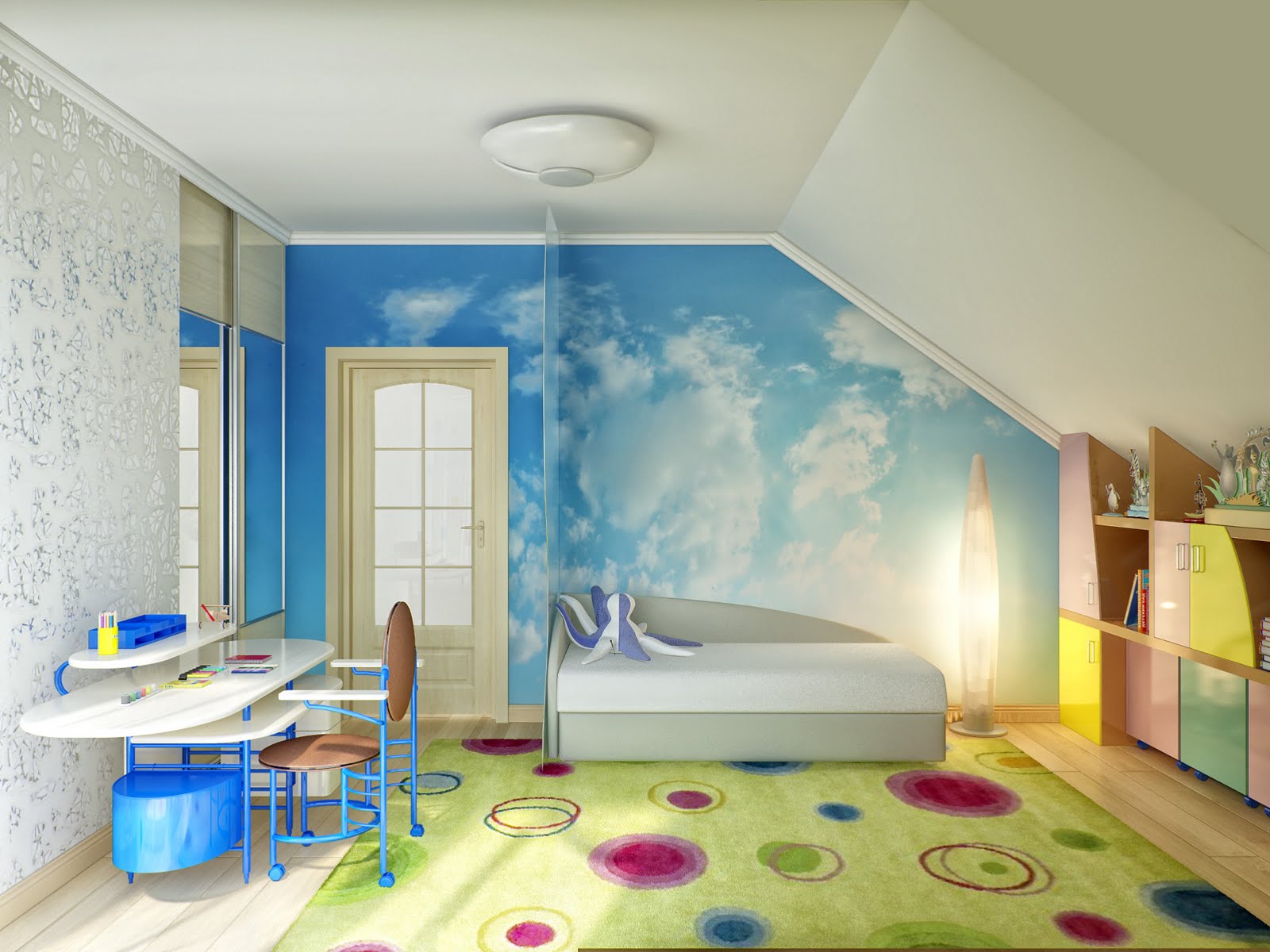 Möbel zu wählen, müssen Sie darauf achten, dass es mit abgerundeten Ecken war. Von den Möbeln ist auf jeden Fall ein Bett, ein Schreibtisch mit einem Stuhl und eine niedrige Kommode zum Aufbewahren notwendiger Dinge ins Zimmer zu stellen.. Die Dekoration des Raumes kann hell oder hell gemacht werden.
