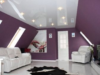 In anderen unbestreitbaren Vorteilen dieser Art der Oberfläche sind relativ gering Kosten, eine breite Palette von Farbtönen, die Fähigkeit, die Bahn zu verlagern, ohne den Guide zu entfernen. Die Nachteile dieser Art der Auskleidung der Dachgeschossdecke beinhalten die Tatsache, dass die Leinwand synthetisch ist. Es hat auch eine geringe Beständigkeit gegenüber mechanischen Beschädigungen.