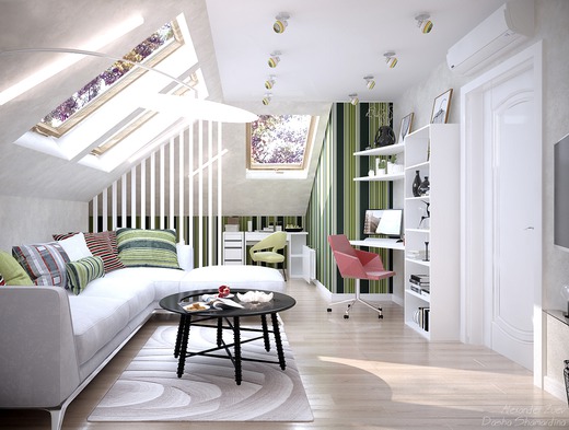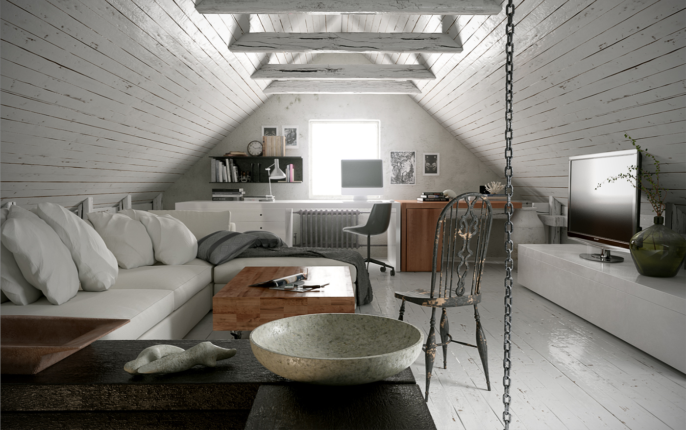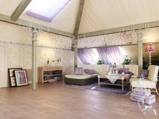 Alle diese Stile sind gut für den Dachboden geeignet. Muss auf sein Gebiet achten. Wenn es erlaubt, können Sie ein Interieur im Stil eines Lofts, skandinavisch oder europäisch, wo Platz benötigt wird, erstellen. In der Anwesenheit von einem kleinen Dachboden, Land, Chalet, wird die Provence gut funktionieren. Wenn Sie alles auf der Stelle erschlagen möchten, können Sie den romanischen Stil wählen, bei dem venezianischer Gips in Braun- und Beigetönen sowie Bemalung verwendet wird. Sie können Wandbilder, Glasmalerei, Mosaik, Marmor, abgerundete Fenster verwenden.