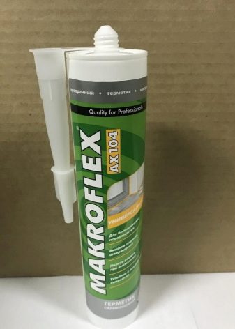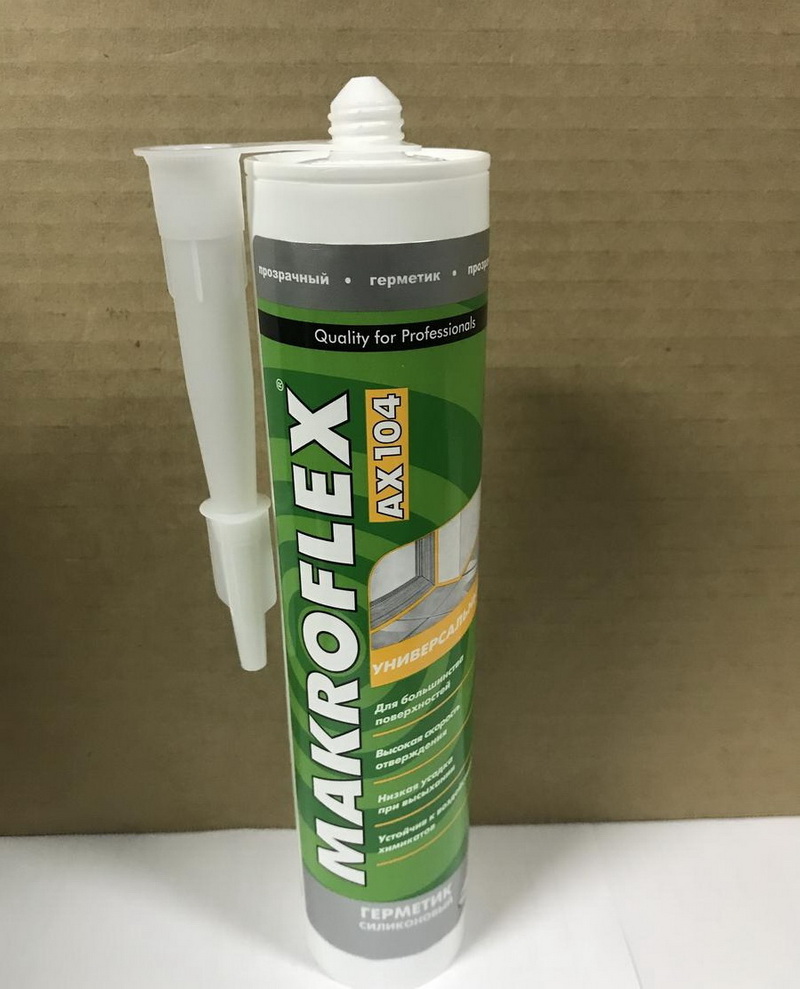 - Makroflex AX104 - auf einer universellen Dichtungsmasse, einschließlich Silikon, die zur Selbstabdichtung von Bauelementen bei der Herstellung von Bauwerken unter geschlossenen Bedingungen und im Freien verwendet wird. Besitzt eine ausgezeichnete Haftung auf Materialien aus Glas, Keramik und Aluminium. Das Produkt enthält pilzhemmende Komponenten.
