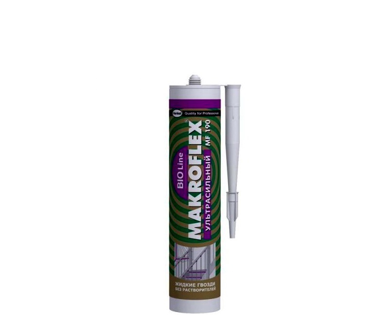 - Makroflex MFf190 - leistungsstarkes, extra starkes weißes Klebesubstrat, das auf der wässrigen Dispersion von Polymeren basiert. Verwendet bei der Verklebung von Produkten aus Kunststoff und Holz für interne und externe Arbeiten. Wirkt schnell und effizient.
