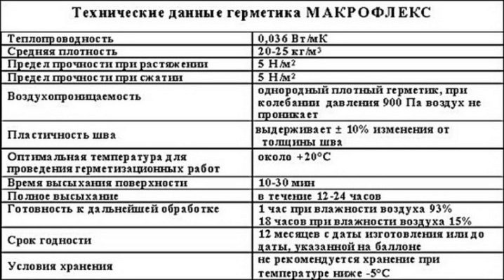 Der offizielle Hersteller erklärt die folgenden technischen Parameter von Produkten von Makroflex, die in den meisten Fällen der Realität entsprechen: