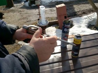 Bevor Sie die Waffe benutzen, müssen Sie vorbereitende Tätigkeiten ausführen. Wenn im Winter bei niedrigen Temperaturen mit Montageschaum gearbeitet werden soll, empfiehlt es sich, ihn auf + 5-10 Grad zu erhitzen. Es ist am besten, Schaum für alle Jahreszeiten zu verwenden. Die Pistole selbst wird in Wasser getaucht, das auf +20 Grad erhitzt wird oder in einem Raum für mindestens 10-15 Stunden gehalten wird.