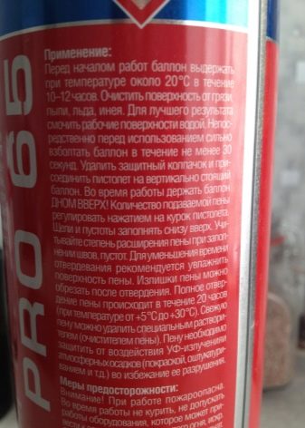 Der Ort, an dem der Schaum aufgetragen wird, sollte nicht unter -5 Grad oder über 30 Grad liegen. Daher ist es nicht empfehlenswert, Reparatur- oder Installationsarbeiten bei Temperaturen unterhalb der Daten durchzuführen.