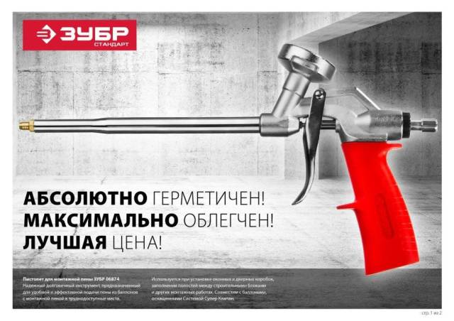 Die Marke Zubr bietet neben Pistolen für Polyurethanschaum auch Pistolen für Silikondichtstoffe, die häufig bei der Wartung und Reparatur von Glasverpackungen eingesetzt werden.Dies sind Mehrzweckpistolen aus Kunststoff, die gleichzeitig zur Installation und Isolierung verwendet werden können.