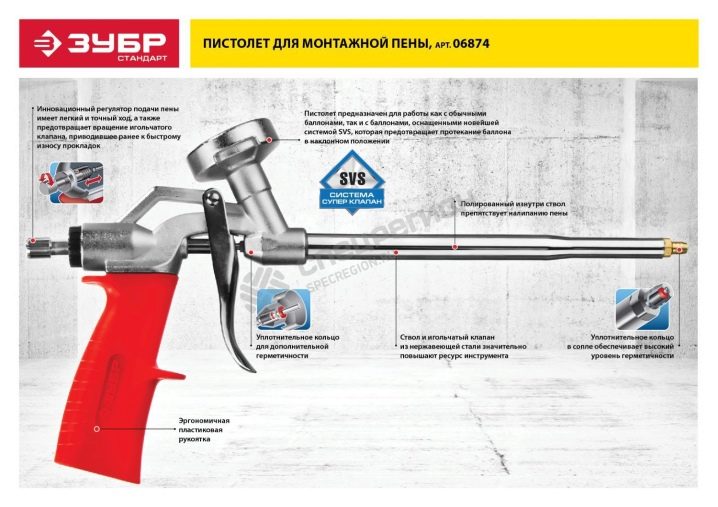 Spezialpistolen für Polyurethanschaum der Marke Zubr können Material einsparen und die Qualität der Arbeit während des Baus und der Reparatur verbessern. Solche Produkte werden sowohl von erfahrenen Fachleuten als auch von Anfängern benötigt, die zum ersten Mal mit Reparatur- und Bauarbeiten konfrontiert werden. Lassen Sie uns versuchen, herauszufinden, wie Sie das richtige Gerät zum Auftragen von Schaum von dieser Marke wählen, was ist sein Gerät, was sind die Merkmale, sind die Regeln der Arbeit schwierig?