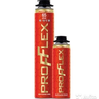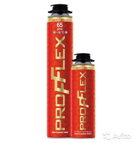 Profflex Polyurethanschäume sind häuslich und professionell. Die ersten sind für kleinere Bau- oder Reparaturarbeiten gedacht. Ein Kunststoffführungsrohr ist an allen Haushaltsdichtmitteln angebracht, durch die die polymerisierte Masse zugeführt wird.