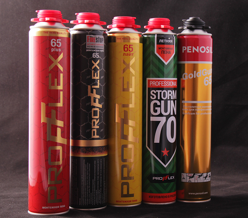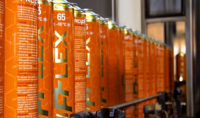 Profflex stellt in Aerosoldosen hergestellte Einkomponenten-Polyurethan-Dichtstoffe her. Die Materialien sind einfach zu bedienen: Wenn Sie den Knopf am Spender oder Kanister halten, wird die Masse herausgedrückt. Als nächstes erfolgt eine Expansion des Schaums, wodurch das Füllen von Lufthohlräumen und -lücken sichergestellt wird. Bei Einwirkung von Feuchtigkeit der Umwelt wird Masse polymerisiert.