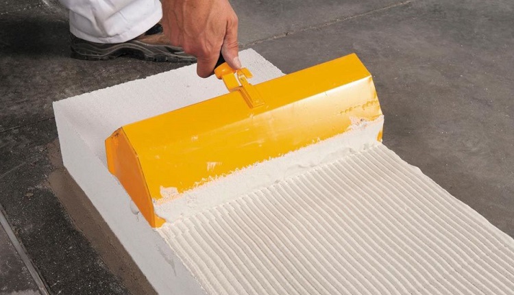 - wenn der Schaumblock in Verletzung der Gesamtgeometrie der Basis liegt, kann er innerhalb von 15 Minuten nach der Fixierung mit der Zusammensetzung immer noch in die gewünschte Position gebracht werden; nach dieser Zeit haftet der Leim an der Oberfläche und die Verlegung ist unmöglich zu reparieren;