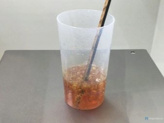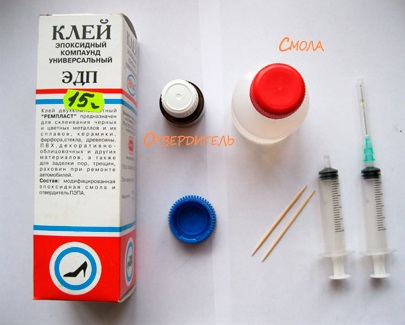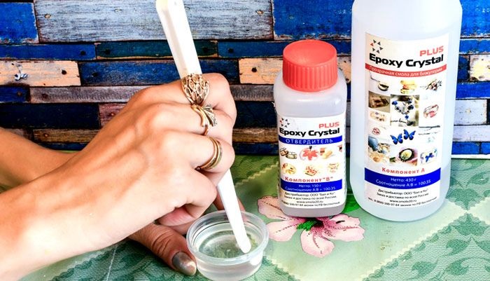 Nach dieser Masse wird kombiniert. Um den Leim zu erhalten, muss das Harz mit einem Härter verdünnt werden. Es ist nicht notwendig, sehr schnell zu pflanzen, da zu aktive Bewegungen zur Blasenbildung im Leim führen. Sie tun nicht viel weh, wenn Sie eine Zusammensetzung für die Bindung benötigen. Aber Epoxid wird oft verwendet, um dekorative Gegenstände zu schaffen, dann werden Blasen sein Aussehen verderben.
