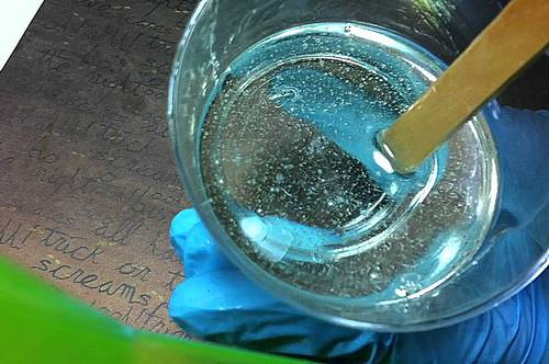 - Lösungsmittel hinzufügen. Um eine flüssigere Zusammensetzung zu erhalten, kann diese nicht nur mit Aceton, sondern auch mit mit Alkohol denaturierten Lacklösungsmitteln gemischt werden. Sie verlängern die Lebensdauer des Epoxidharzes, können seine Farbe verändern und die Oberfläche beschädigen. Schrumpfung des Harzes und Verringerung seiner Festigkeit können ebenfalls auftreten.