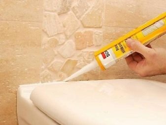 - Sanitär (Flüssigkautschuk und Nägel) schnell auf Glas und emaillierte Oberflächen setzt, ist es notwendig, die Lücken zwischen Waschbecken, Waschbecken und Wand zu verstärken;