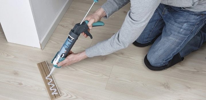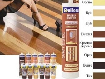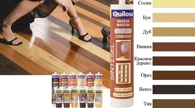 Für Holzbeschichtungen ist eine transparente Klebemasse sinnvoll. Um mit dem Boden (Parkett, Laminat) zu arbeiten, empfiehlt es sich, dunklere Töne zu wählen, die nach dem Trocknen nicht auffallen.