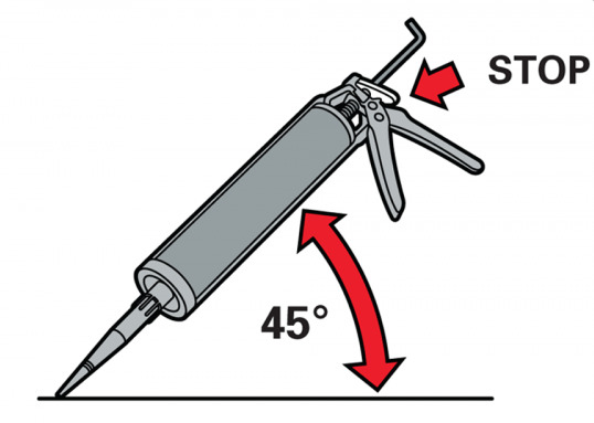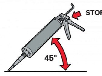 Bei der Arbeit mit der Leim-Dichtmasse ist nichts schwierig. Es lohnt sich, eine Waffe zu kaufen, in der Sie vor der Verwendung einen Zylinder installieren müssen. Dann müssen Sie die Düse einsetzen und den Durchfluss einstellen, um den Spender mit der erforderlichen Dicke zu trimmen. Um das Werkzeug aus der Pistole zu drücken, verwenden Sie einen Hebel, auf den Sie bei der Arbeit sanft drücken und sofort einrasten müssen. Es ist wichtig, daran zu denken, dass der Ballon selbst in einer Neigung von 45 Grad gehalten werden muss.