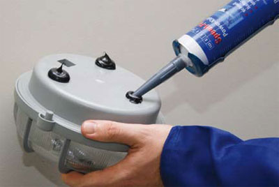 - transparenter Kleber wird verwendet, wenn Möbel und Rohrleitungen installiert werden, um Feuchtigkeit zu vermeiden;