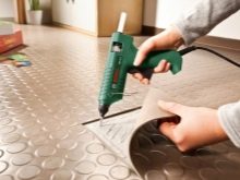 Heiße Zusammensetzung ist eine Garantie für zuverlässiges Schweißen während der Montage und Bauarbeiten. Die Mischung trocknet in Sekunden, und die Versiegelungseigenschaft trägt dazu bei, dass die flüssige Zusammensetzung selbst die Form eines Lochs annimmt. Bei der Arbeit mit einer Thermogun sollte beachtet werden, dass der Kleber für ein paar Minuten abkühlt, so dass es nicht empfehlenswert ist, einen gefrorenen Tropfen mit bloßen Händen zu berühren, da Sie sich die Finger ernsthaft verbrennen können.
