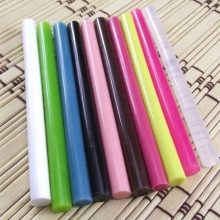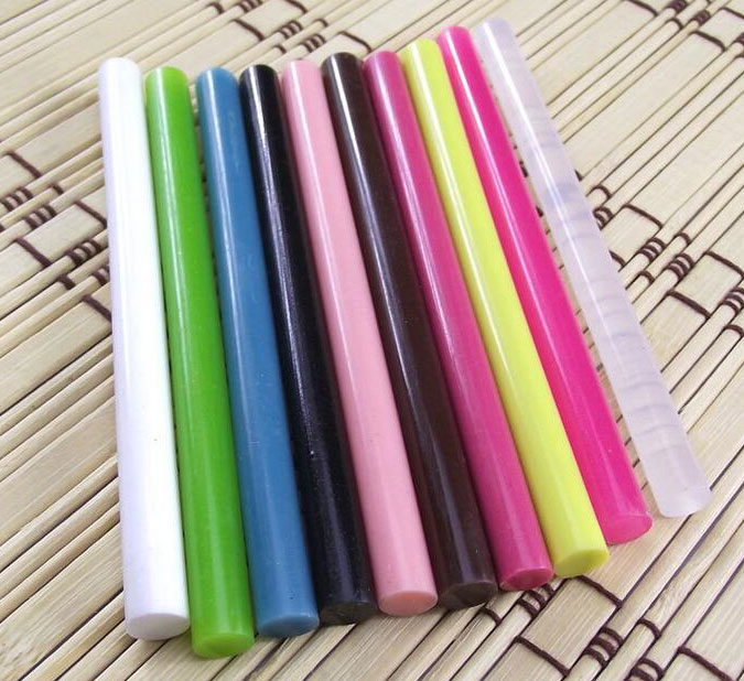 Zusätzlich zur Kalibrierung werden die Stäbe auch nach Farbe klassifiziert. Es gibt Standard - transparente Stangen, die als universell gelten. Sie können jedoch zum Beispiel Stäbe in schwarz oder weiß kaufen und färben. Rot, Gelb, Grün, Blau und Stäbchen anderer Schattierungen sind oft in Geschäften zu finden. Die Wahl des Tones hängt von der Farbe der aufgetragenen Oberfläche ab, aber nicht immer sieht die transparente Standardmasse richtig aus, manchmal lohnt es sich, eine zusätzliche Kassette der gewünschten Reichweite zu kaufen.