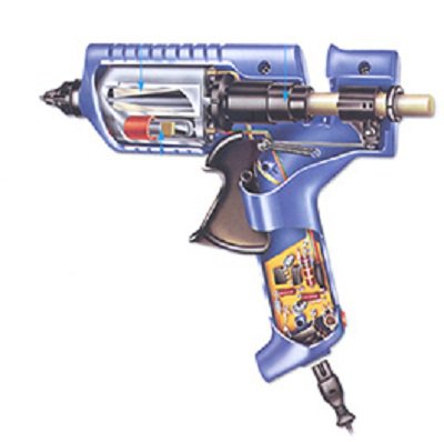 Die Waffe selbst sieht aus wie ein Kinderspielzeug. Es besteht aus zwei Teilen: einem Heizmechanismus und einer Vorrichtung zum Zuführen von geschmolzener Flüssigkeit. Je nach Anwendung kann es groß oder klein sein. Die Menge der extrudierten Masse wird durch einen speziellen Knopf am Instrumentenkoffer kontrolliert.