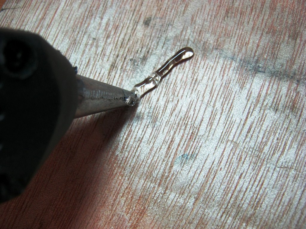 Das Produkt selbst wird zunächst in fester Form verkauft und ähnelt einer zwanzig Zentimeter langen Rute. Er wärmt seine Spezialwaffe auf, die für Installationsarbeiten bestimmt ist.