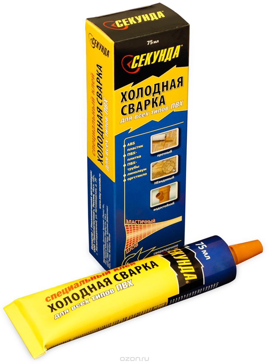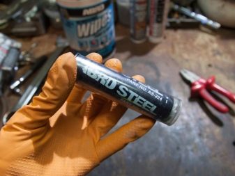 - In flüssiger Form wird seine Basis Epoxy, langsam härtend in Kombination mit einem Härter. Die Zusammensetzung wird in Verbindung mit einem Metallgitter oder Glasfaser verwendet. Auf die Klebeflächen aufgetragen, bleiben keine unangenehmen Gerüche oder Sekrete vom Klebstoff zurück.